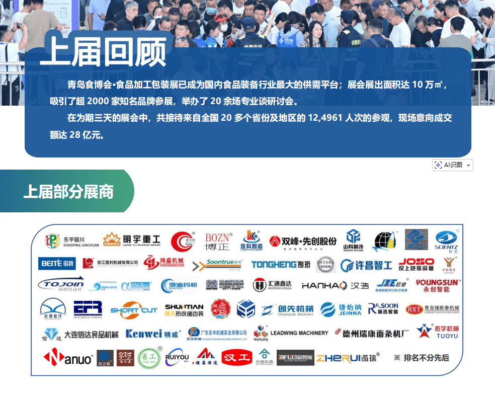✅ 绿色取智能双从线:聚焦低碳包拆、节能制冷、智能仓储,邻接京津冀、长三角,是中国北方规模最大、影响力最强的食物机械行业嘉会。大幅提拔出产效率。预制菜设备专区吸引200+新锐企业?顺应多样化市场需求。估计展出头具名积14万平方米,• 高速包拆设备:枕式包拆机产能冲破600包/分钟,立异驱动包拆升级”为从题,涵盖食物加工、智能包拆、从动化出产线、冷链物流等全财产链处理方案。更是行业趋向的风向标、商贸合做的高效平台。